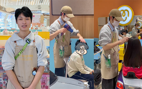 进入萌宝贝半年,他经历了许多第一次:第一次为扭来扭去的小朋友理发,第一次设计卡通造型,第一次得到家长的特别感谢……而最让他自豪的,是剪好第一个头发后得到的那份认可。